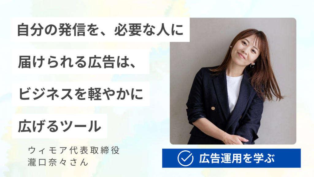広告運用をマスターする講座。1日150円程で広告を使い始めてみませんか?クライアントに広告運用を教えたい方には、商用利用可能な充実の教材をご用意しています。