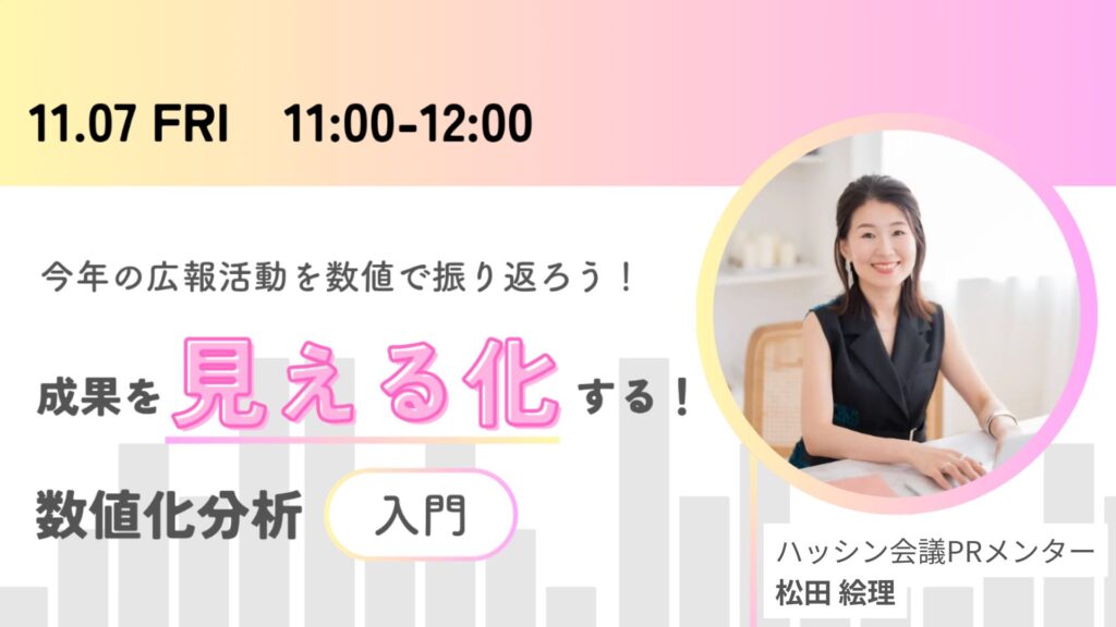弊社代表の松田が、PRコミュニティ「ハッシン会議」で勉強会に登壇させていただきました。 広報活動の成果を"見える化"するための数値分析入門をお届けしました。 広報あるあるのお悩み 広報活動の成果を社内でうまく伝えられない 広報活動の成果を数値化... -
