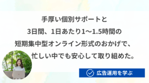 短期間で、広告運用の準備をしたい人向けに「広告合宿」オンライン版を開催しています。